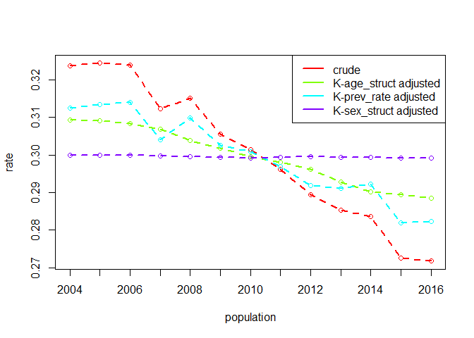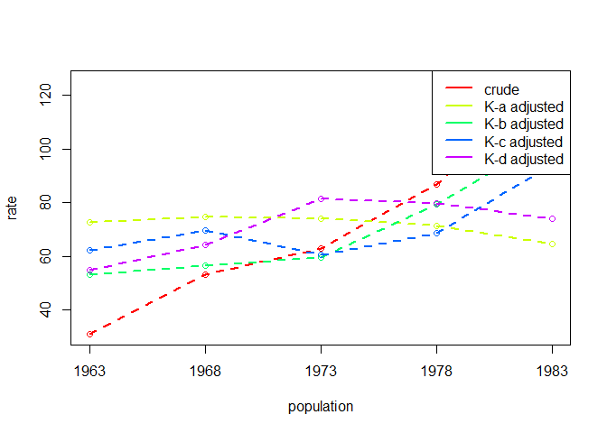 computes the standardised rates for \(K\) factors across \(N\) populations: