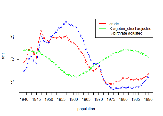 Rates may be composed of many factors, and they may not be calculated as a simple product. Additionally, we may desire to standardise across many populations — such as in a time series — or we may have be interested in how the compositional structure of populations contributes to the differences in these rates.