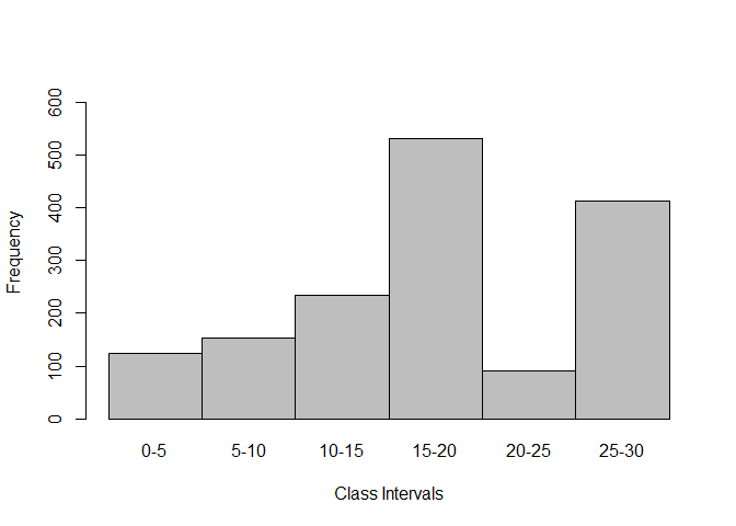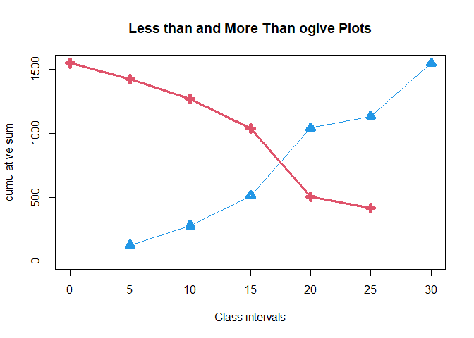 This is a basic example which shows you how to use this package to get automated frequency distribution table with cumulative frequencies and cumulative frequency plot:
